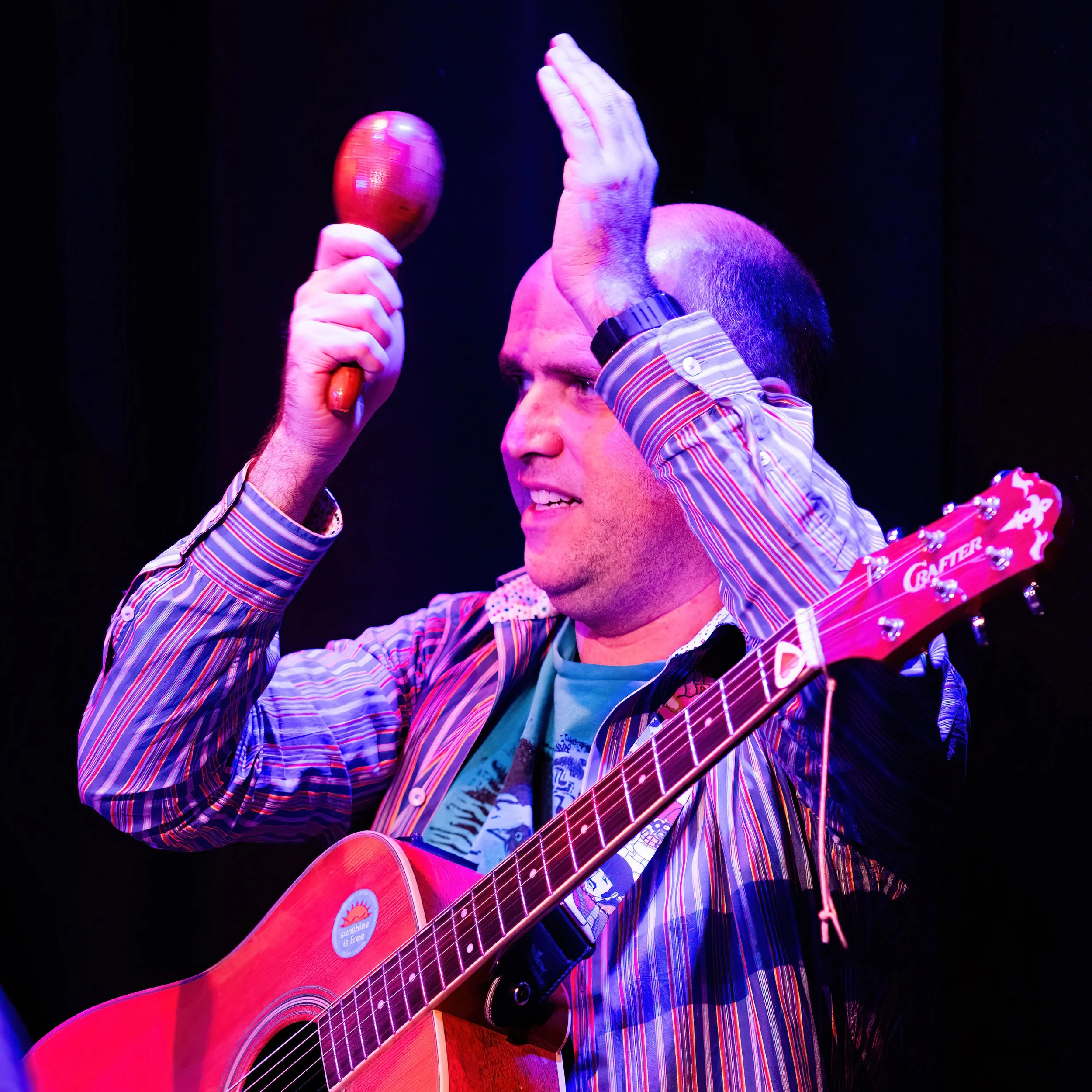 He is at his happiest playing music without any stage to separate performers and audience, and cares deeply about making music accessible to all.
